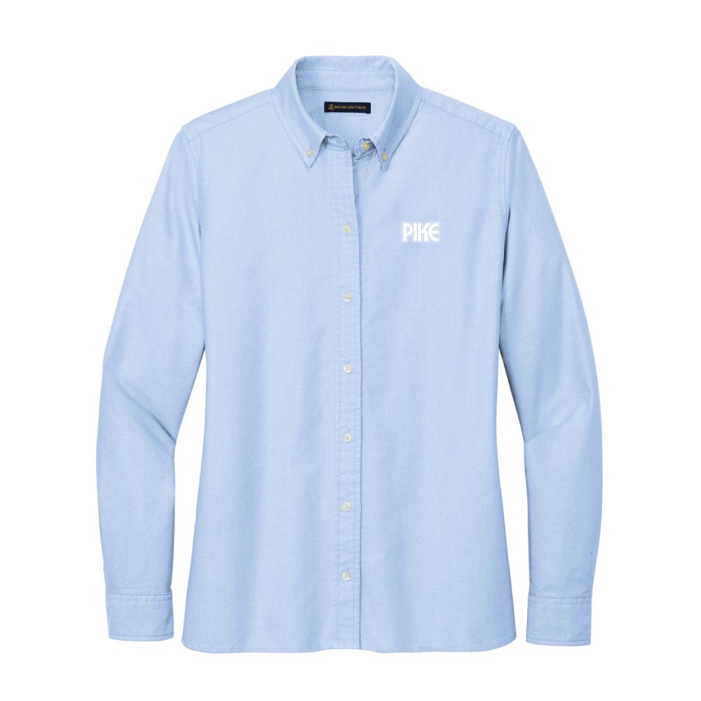sku: PK18005Brooks Brothers Women's Casual Oxford Cloth Shirt Originally invented in 1900, this iconic silhouette embodies the off-duty professional look whether you dress it up or keep it casual. 5-ounce, 100% cotton oxford Garment-washed Button-down collar Button at center back collar Box pleat and locker loop at back yoke Pearlized buttons with Brooks Brothers logo Gussets at side seam Rounded, adjustable cuffs Pike logo embroidered on the left chest.