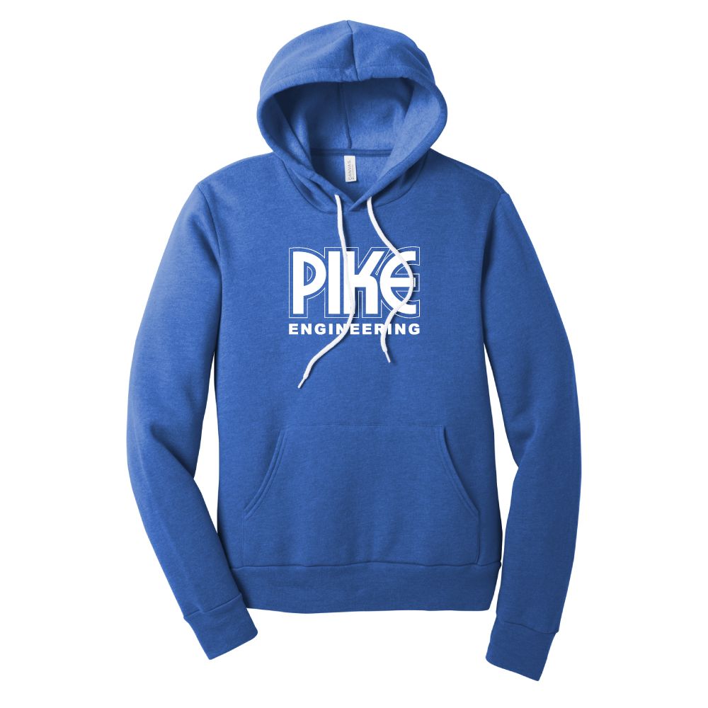 sku: PE3719HTRBELLA+CANVAS Unisex Sponge Fleece Pullover Hoodie. Retail fit Tear-away label White drawcords. Side seamed Kangaroo pockets with rib knit cuffs and hem. Pike Engineering logo imprinted on the front.
