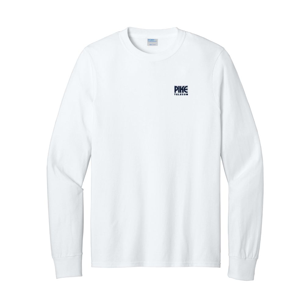 sku: PT0054LSW5.4 oz., 100% cotton with shoulder-to-shoulder taping, coverseamed neck, rib knit cuffs and double-needle hem. Pike Telecom embroidered logo.