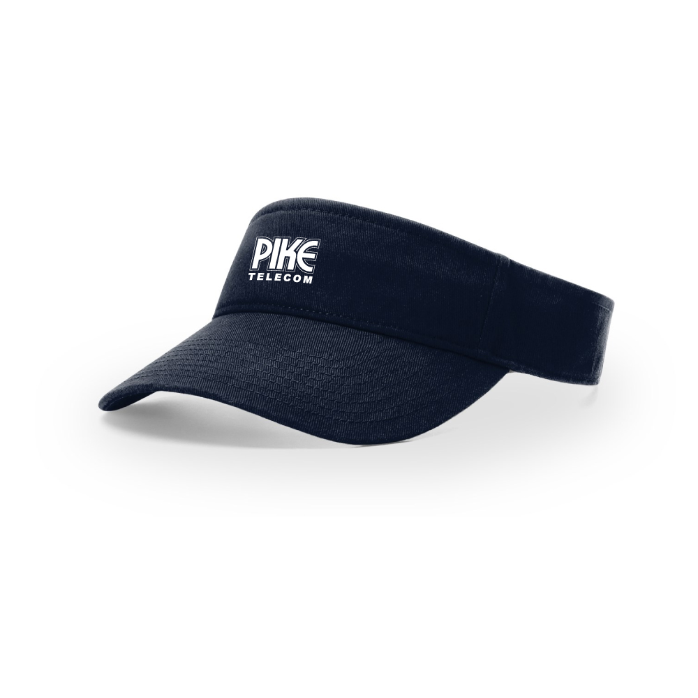 sku: PT00R45Richardson Garment Washed Visor. This garment-washed chino twill with three-panel construction,2 1/4" front panel, pre-curved visor and adjustable cloth hook-and-loop back strap. Pike Telecom logo embroidered.