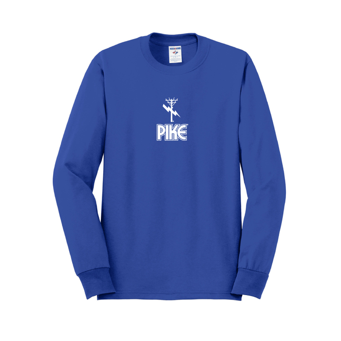 sku: PK0029BLJerzees Dri-Power Active 50/50 Cotton/Poly Youth Long Sleeve T-Shirt. Pike & Bolt logo printed on the center chest.