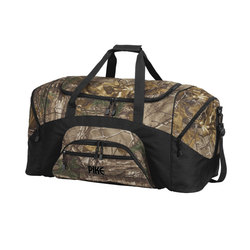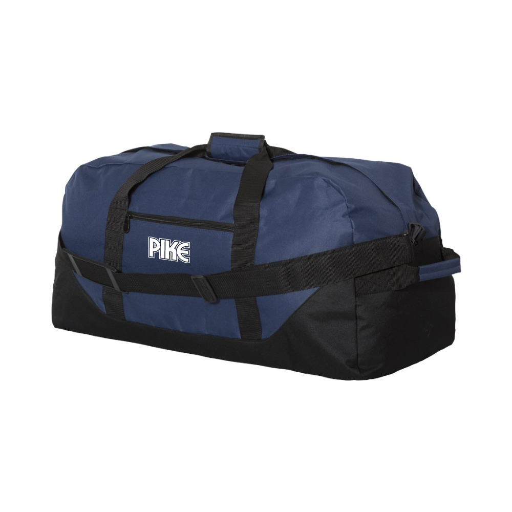 sku: PK02252Large Duffle bag is made of 600 Denier polyester and features a contrasting black bottom. A front zipper pocket allows for quick and easy storage of smaller items. There are top and side grip handles and a black detachable / adjustable strap for carrying. Non-branded label/tag.