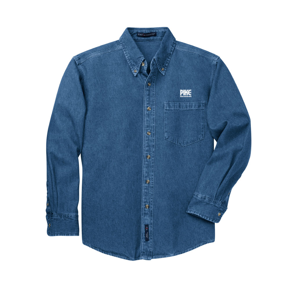 sku: PE00S100Substantial stonewashed fabric and extra-durable seams, our heavyweight denim shirt is built to embroider beautifully. No back pleat means an uninterrupted canvas for decoration. 7.5-ounce, 100% cotton with double and triple-needle stitching. Features button-down collar, horn-tone buttons, patch pocket, button-through sleeve plackets and adjustable cuffs. Includes tuck-in tail.