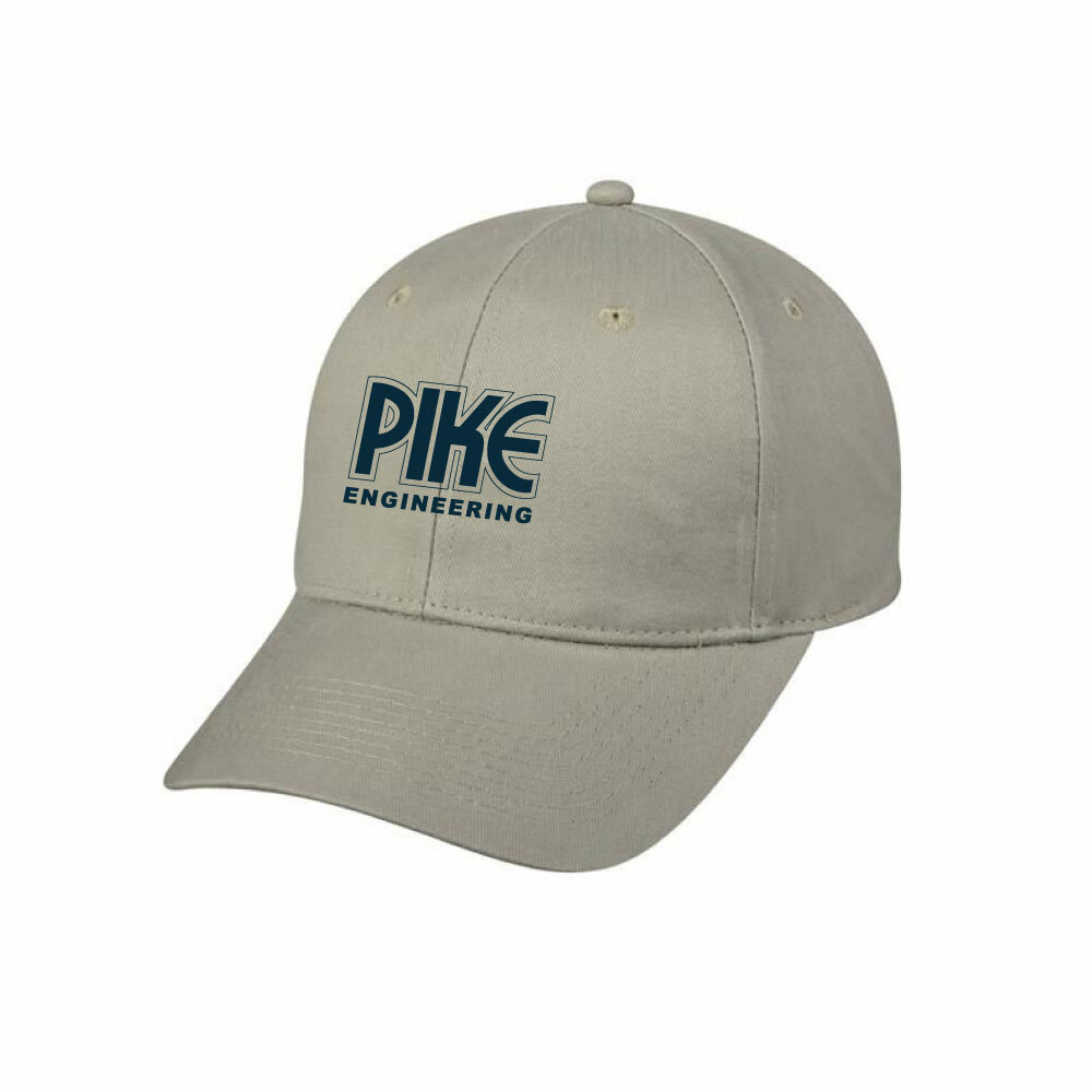 sku: PE00600KThis brushed cotton cap is one size fits most! The 6 panel, structured, pro-style mid profile cap comes in khaki with Pike Engineering embroidered on the front panel.