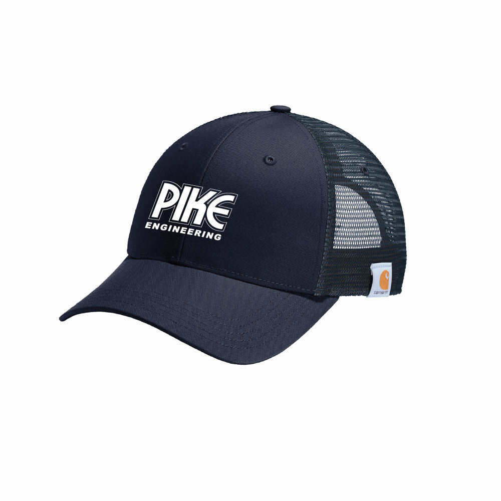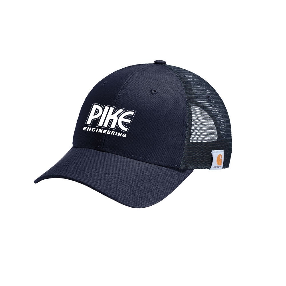 sku: PE103056This all-star canvas hat has stretch technology and a sweat-fighting band. 59/39/2 cotton/poly/spandex with 100% polyester mesh back. Carhartt Force sweatband fights odors; FastDry technology wicks away sweat for comfort. Structured, mid profile, pre-curved visor, adjustable fit with plastic closure. Pike Engineering logo embroidered on the front panel.