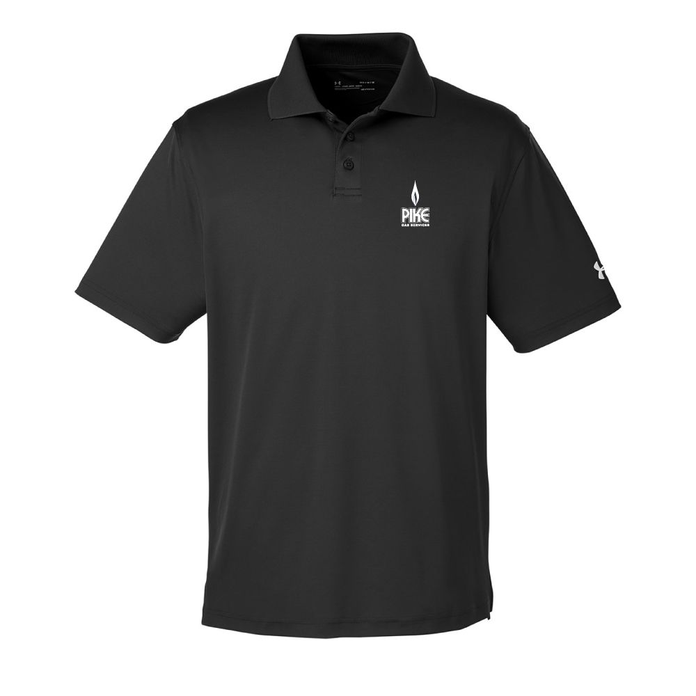 sku: PG11261172BUnder Armour Men's Corp Performance Polo with embroidery services. 95% polyester, 5% elastane, smooth fabric, soft anti-pick, snag-free finish, anti-odor, 30+ UPf, athletic loose fit, hemmed sleeves, Durable Rib Knit. Pike Gas embroidered on the left chest.