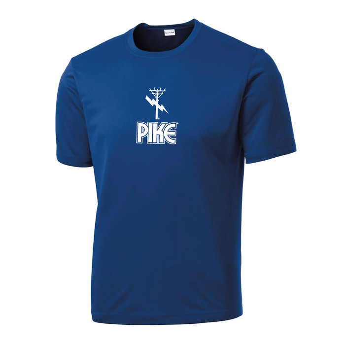 sku: PKST350RLightweight performance tee. 3.8-ounce, 100% polyester. Removable tag for comfort and relabeling. Double-needle sleeves and hem. Pike logo printed full front. This product is not FR.