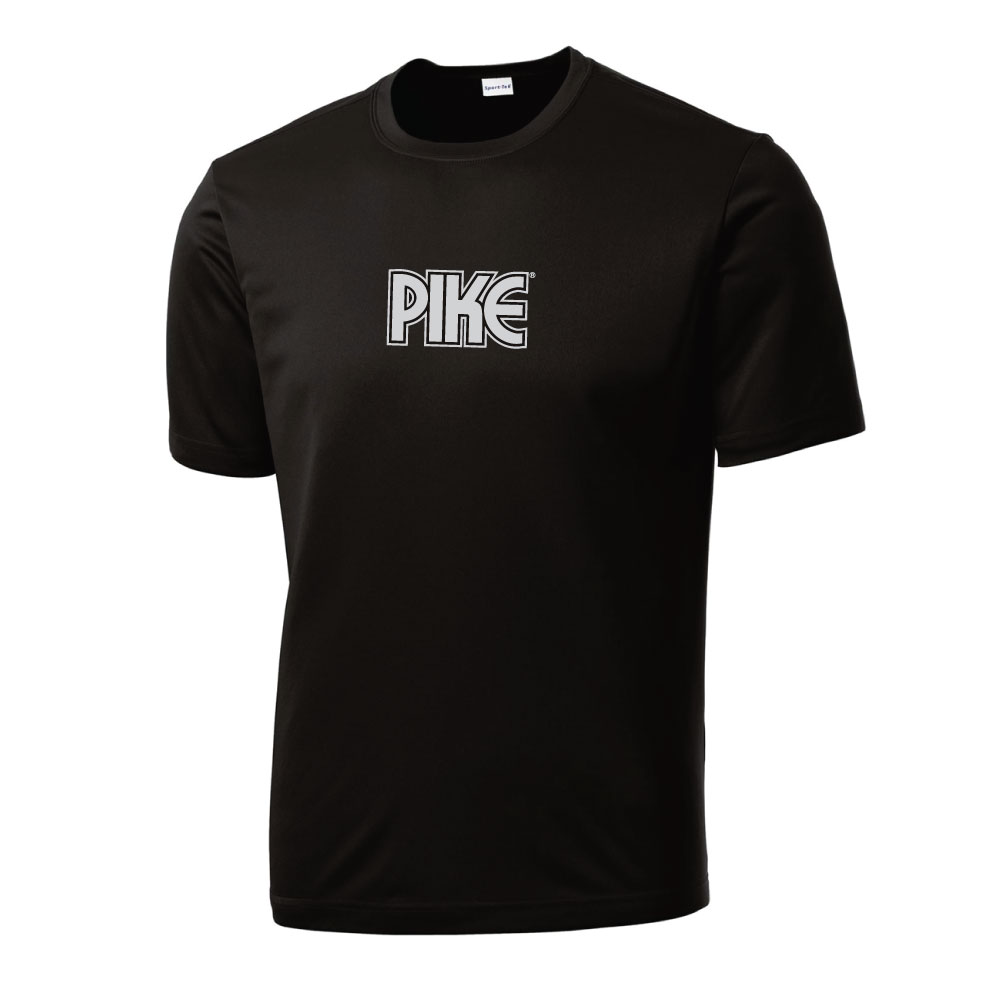 sku: PKST350BLightweight performance tee. 3.8-ounce, 100% polyester. Removable tag for comfort and relabeling. Double-needle sleeves and hem. Pike logo printed full front. This product is not FR.