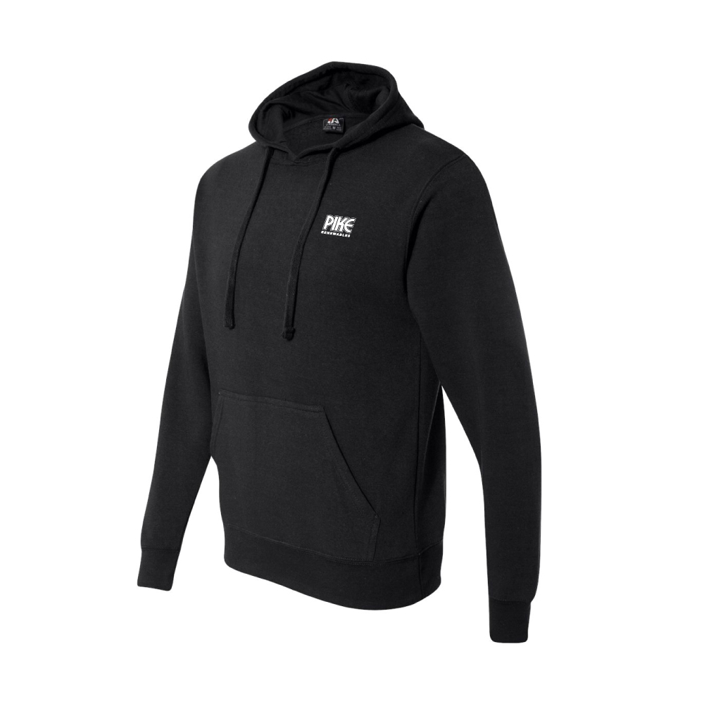 sku: PR08620Cloud Fleece Hooded Pullover Sweatshirt. A sports conscious, cool pullover with contrast panels and a handy media player pocket. This J. America 8.0 Oz., 60/40 cotton/polyester air-spun fleece. Features ultra-soft face and triple-napped backing, dyed-to-match flat drawcord and front pouch pocket. Pike Renewables logo printed on the left chest.