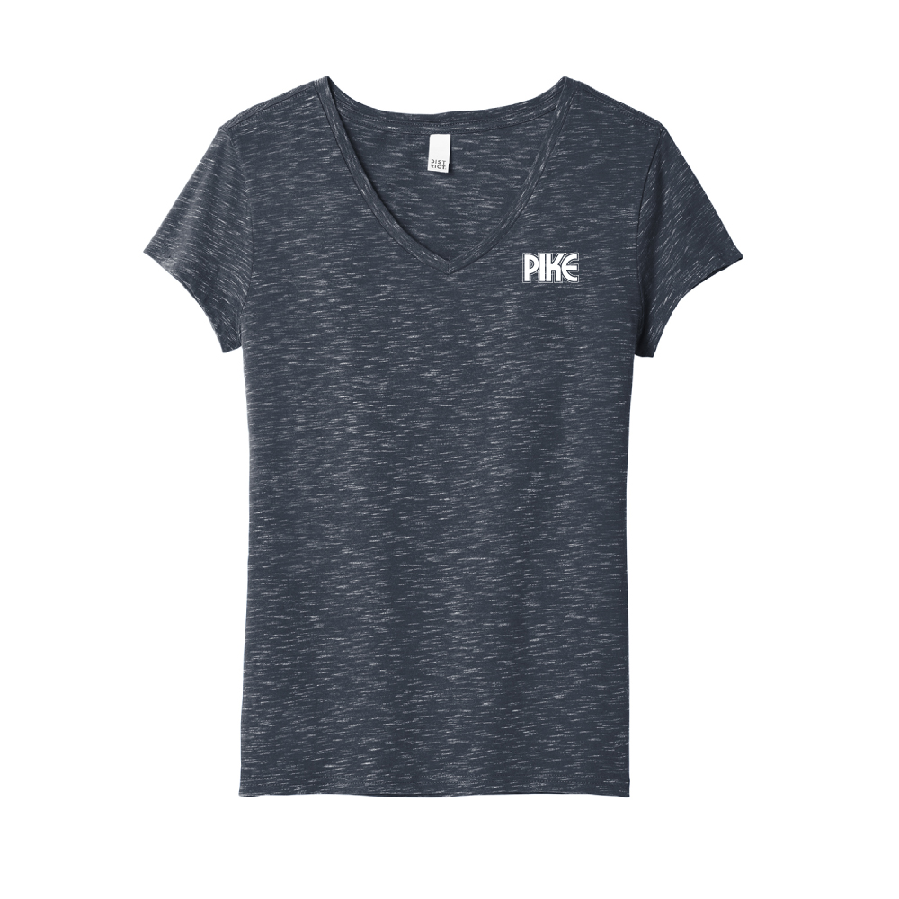 sku: PKDT664District Women’s Medal V-Neck Tee. 4.9-ounce, 90/10 combed ring spun cotton/poly, Tear-away label with a relaxed fit. This product is not FR.